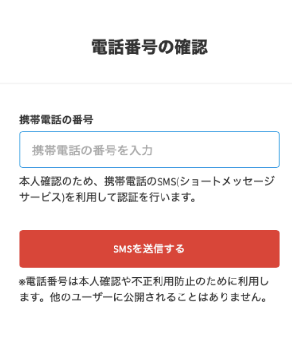 電話番号を入力して、携帯電話宛てにショートメッセージで確認コードが届きます。