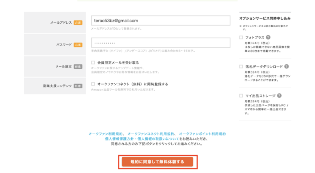 「規約に同意して無料体験する」をクリックします。