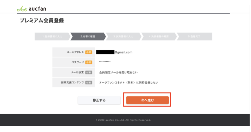「次へ進む」をクリック