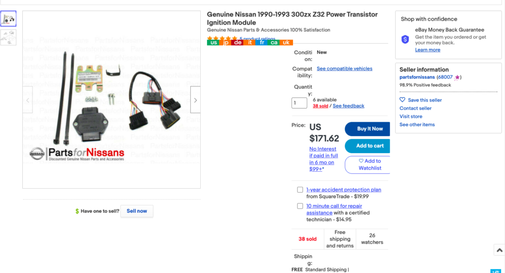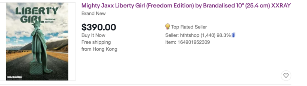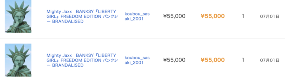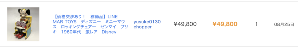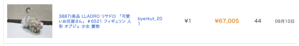 実際のeBayでの商品ページで仕入れ値とヤフオクでの販売実績として、
