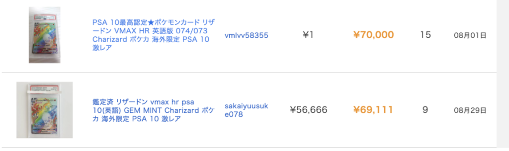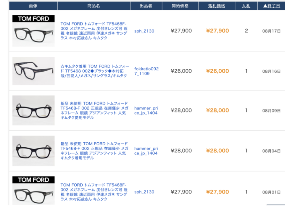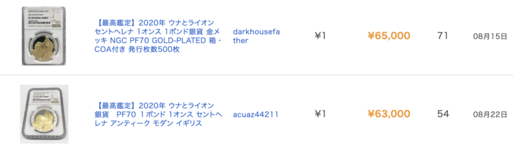 オークファンの画像を載せて解説します。