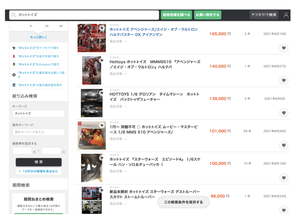 まずはオークファンを用いて、