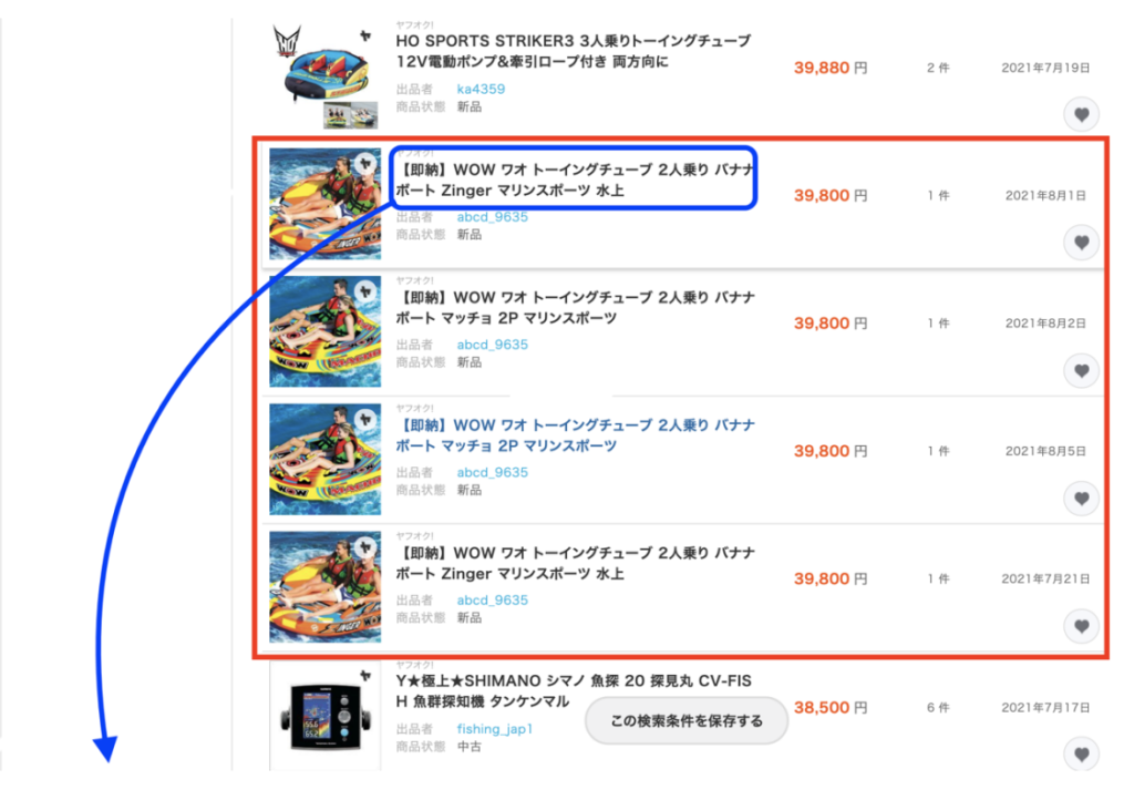 そうすると、オークファンと同じ商品が出てきたので、