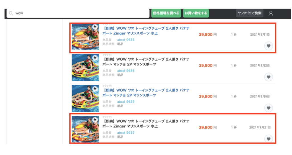 ほぼ確実にオークファンと同じ商品であることがわかります。