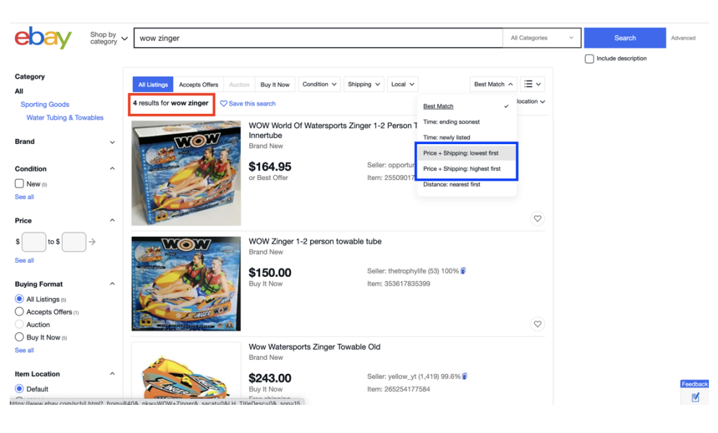 Price+Shipping:highest first(商品代もしくは送料代込の価格の高い順)