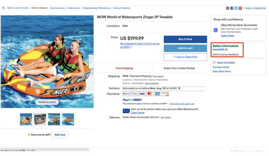 100%のPositive feedbackではありますが、(2)件しか評価されていない、