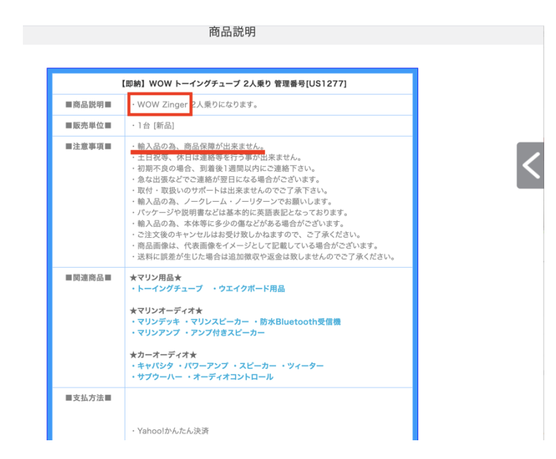 そして「この商品説明の続きを見る」をクリックしてみます。