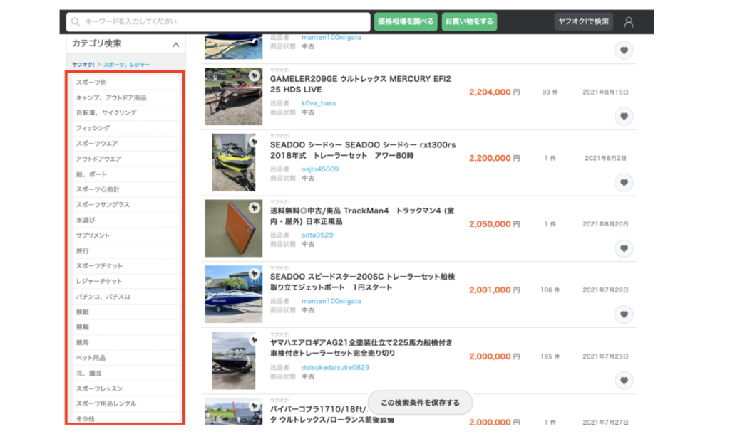 例えば、「スポーツ、レジャー」のカテゴリーだと、