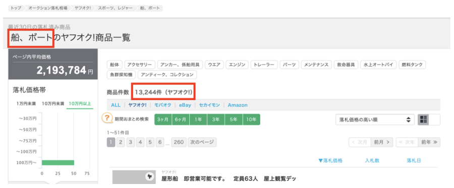 ・オークファンから読み取るヤフオク販売価格