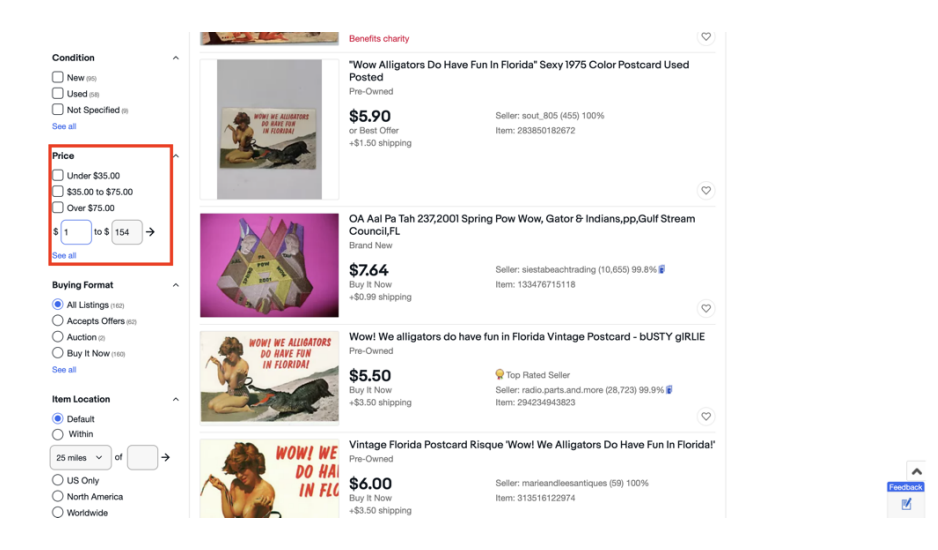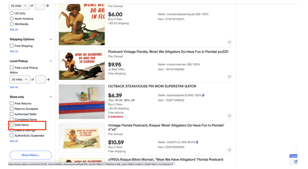 必ず、Sold listingsでないことを確認しましょう!