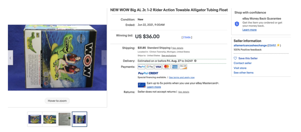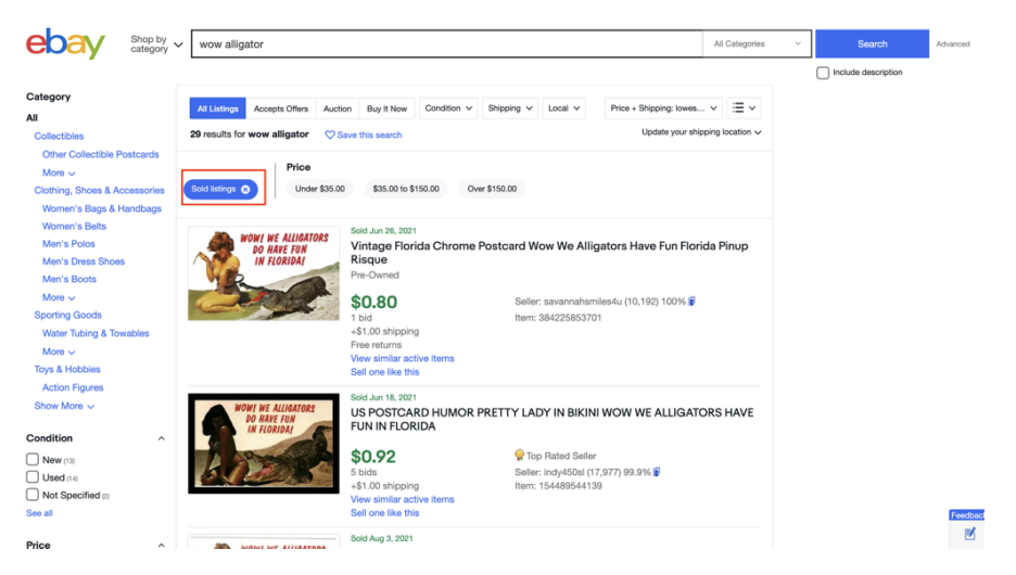 他の「Wow」の出品は確認されましたが、「Wow alligator(ワニ)」は見つかりませんでした。