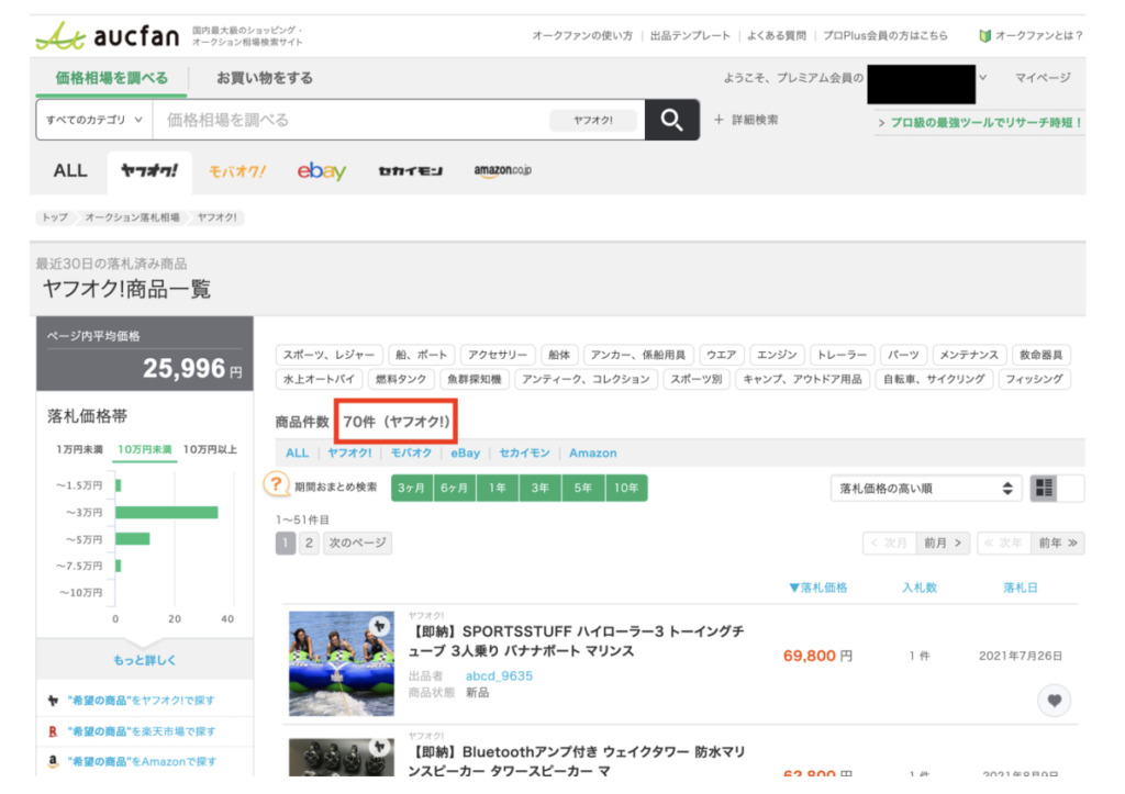 ・オークファンから読み取るヤフオク販売価格