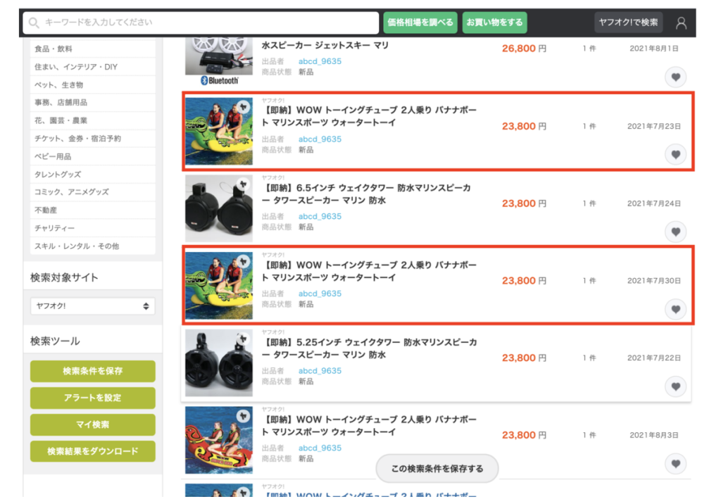かなり利益が見込めますので、「Save this search」を使って、